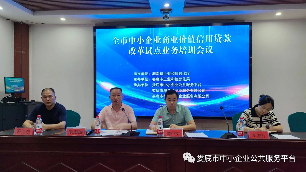 為加快推進全市中小企業(yè)商業(yè)價值信用貸款改革試點工作步伐,7月12日,在市中小企業(yè)公共服務平臺舉辦了全市中小企業(yè)商業(yè)價值信用貸款改革試點業(yè)務培訓會。省“湘企融”平臺專家到會作業(yè)務指導培訓,省工信廳中小企業(yè)服務指導處副處長譚中文、省中小企業(yè)融資服務股份有限公司董事長李淑芳出席并講話,市工信局中小企業(yè)科負責人,各縣市區(qū)科工信局、婁底經開區(qū)產業(yè)發(fā)展局中小股股長,部分金融機構部門負責人及省級核心服務機構、規(guī)上企業(yè)代表參加會議。