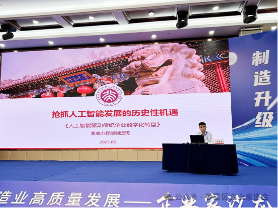 易海明主任以“制造業(yè)如何搶抓人工智能發(fā)展的歷史性機(jī)遇”為題,從認(rèn)識(shí)人工智能模型,培育人工智能模型的迫切性,培育人工智能模型的戰(zhàn)略性要素,詳解人工智能模型培育案例和趨勢(shì)四個(gè)方面系統(tǒng)剖析了人工智能技術(shù)演進(jìn)脈絡(luò)及其與制造業(yè)融合的核心場(chǎng)景,結(jié)合國(guó)內(nèi)外標(biāo)桿案例,為在場(chǎng)企業(yè)家描繪了AI賦能研發(fā)設(shè)計(jì)、生產(chǎn)流程優(yōu)化、供應(yīng)鏈管理、質(zhì)量控制和精準(zhǔn)營(yíng)銷的全鏈條圖景?;?dòng)環(huán)節(jié),企業(yè)家結(jié)合自身轉(zhuǎn)型痛點(diǎn)踴躍提問(wèn),易主任就技術(shù)選型、投入產(chǎn)出比、安全風(fēng)險(xiǎn)等實(shí)際問(wèn)題進(jìn)行了針對(duì)性解答,現(xiàn)場(chǎng)交流氣氛熱烈。