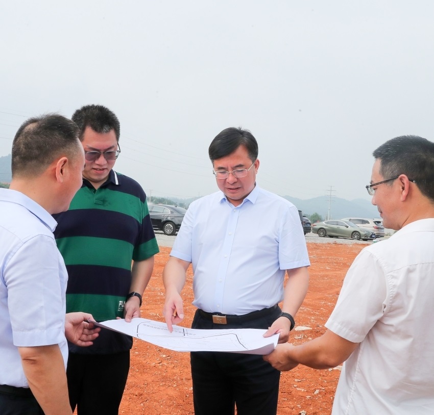 △8月8日,婁底市委書記鄒文輝赴婁星產(chǎn)業(yè)開發(fā)區(qū)調(diào)研重點(diǎn)項(xiàng)目建設(shè)和安全生產(chǎn)工作。這是鄒文輝在正威電力銅基新材料產(chǎn)業(yè)園項(xiàng)目工地調(diào)研。